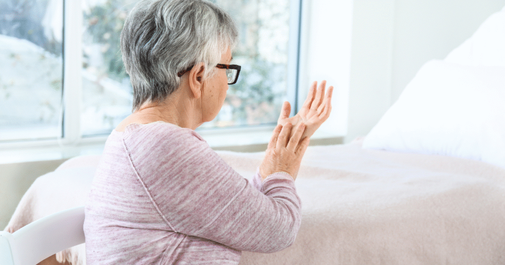 よく見られる症状は「ピル・ローリング振戦」と呼ばれ、手の親指と人差し指で丸薬をコロコロ動かすような動きで、1秒間に4〜6回程の速さで起こります。【2】